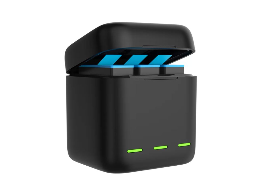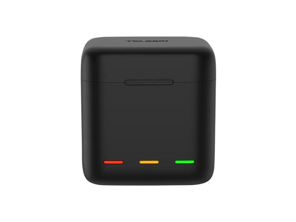 Nabíjačka 3 v 1 od spoločnosti Telesin umožňuje rýchlo nabíjať až 3 batérie GoPro Hero súčasne. Je ľahká a kompaktná - môžete ju mať vždy po ruke. Vďaka jej komplexnému bezpečnostnému systému je jej používanie bez rizika. Navyše zabudované LED indikátory poskytujú informácie o stave nabíjania v reálnom čase. Ďalšou výhodou nabíjačky je silikónová priehradka, do ktorej môžete uložiť až 2 pamäťové karty TF.