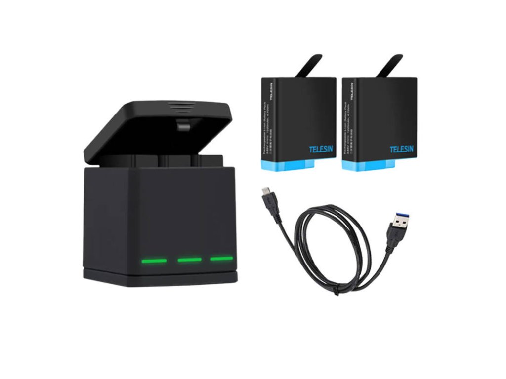 3-slotový nabíjací box Telesin pre GoPro Hero 5/6/7/8 + 2 batérie (GP-BNC-801)