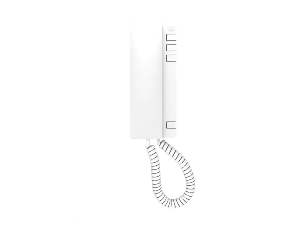 Unifon słuchawkowy z magnetycznym odkładaniem słuchawki, jednym przyciskiem otwierania oraz trzema przyciskami funkcyjnymi.