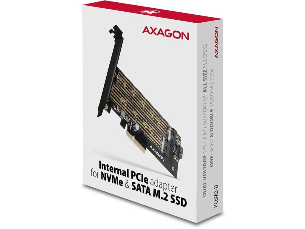 - Adapter wewnętrzny AXAGON PCEM2-D umożliwia przyłączenie aż dwóch dysków SSD M.2 do komputera stacjonarnego. Jest więc idealnym wyborem do upgrade'u komputera stacjonarnego, który nie jest wyposażony w slot M.2.