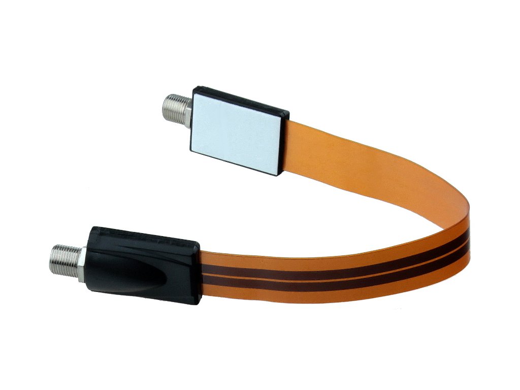 Odcinek 23 centymetrowy spłaszczonego przewodu koncentrycznego(grubość 0,5mm) zakończony gniazdami "F" przeznaczony do przeprowadzenia okablowanie przez zamknięte okno.