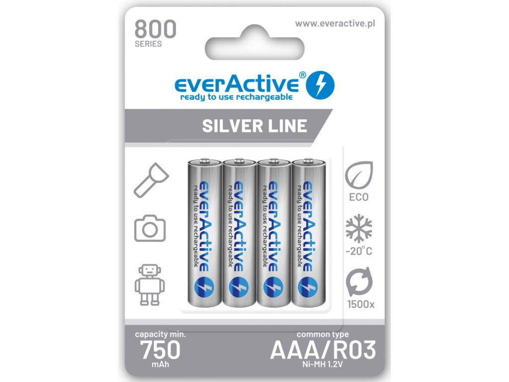 Akumulatorki AAA / R03 Ni-MH everActive 800mAh Silver Line (box 4 szt.)