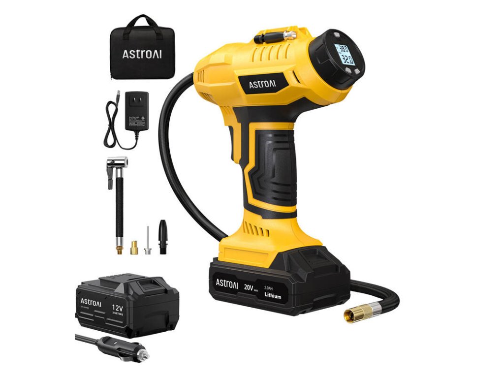 Zariadenie AstroAI je vybavené výkonnou batériou s kapacitou 2,0 Ah, ktorá umožňuje až 20 minút nepretržitej prevádzky - dostatočne dlho na to, aby ste nafúkli pneumatiku auta približne 4-krát, pneumatiku motocykla približne 14-krát, pneumatiku bicykla približne 17-krát alebo basketbalovú loptu približne 87-krát. Inflátor sa dobije do hodiny a jeho stav ukazujú LED indikátory.