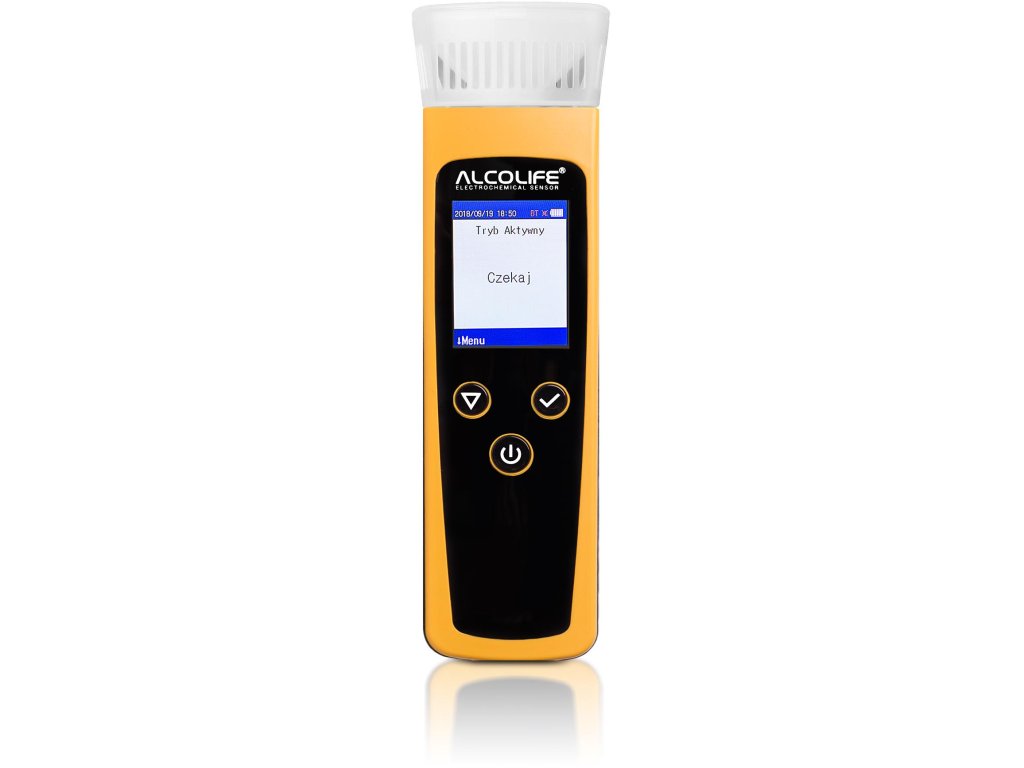 Alkomat ALCOLIFE GO korzysta z wysokiej klasy europejskiego sensora elektrochemicznego, opartego na technologii stosowanej w alkomatach policyjnych, co zapewnia stabilną precyzję pomiaru przez długi czas. Czujnik jest skonstruowany tak, aby rozpoznawać wyłącznie molekuły alkoholu etylowego, dzięki czemu jest odporny na zakłócenia pochodzące z innych substancji obecnych w wydychanym powietrzu czy otoczeniu. W połączeniu z możliwością regularnej kalibracji i programem nielimitowanych adiustacji, ALCOLIFE GO zachowuje wiarygodność wyników nawet przy bardzo intensywnym, codziennym użytkowaniu w firmach i służbach.