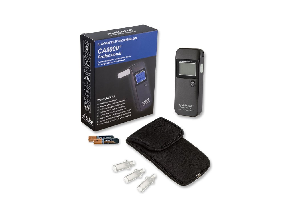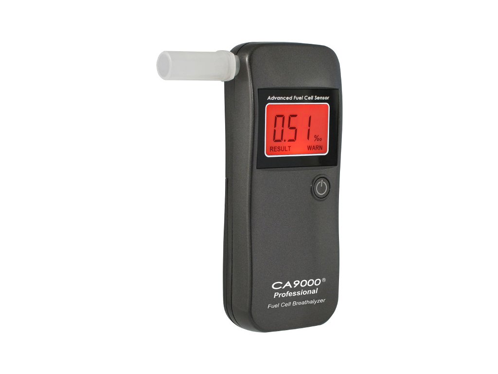 Alkomat CA9000® Professional to połączenie eleganckiego wzornictwa i nowoczesnej technologii pomiarowej opartej na elektrochemicznym ogniwie. Jest liderem w klasie alkomatów elektrochemicznych nie tylko ze względu na niezwykłą dbałość o detale podkreslające jakość wykonania, ale przede wszystkim wysoką dokładność i powtarzalność pomiarów potwierdzoną przez niezależne laboratorium posiadające akredytację Polskiego Centrum Akredytacji (PCA). Wyniki wyświetlane są w formie cyfrowej w zakresie od 0.00 do 4.00 ‰, z rozdzielczością do dwóch miejsc po przecinku. Alkomat CA9000® Professional posiada wbudowany czujnik przepływu powietrza, system zabezpieczający komórkę pomiarową przed uszkodzeniem w wyniku niewłaściwie przeprowadzonej próby, licznik ilości wykonanych pomiarów oraz funkcją przypominającą o konieczności wykonania kalibracji.