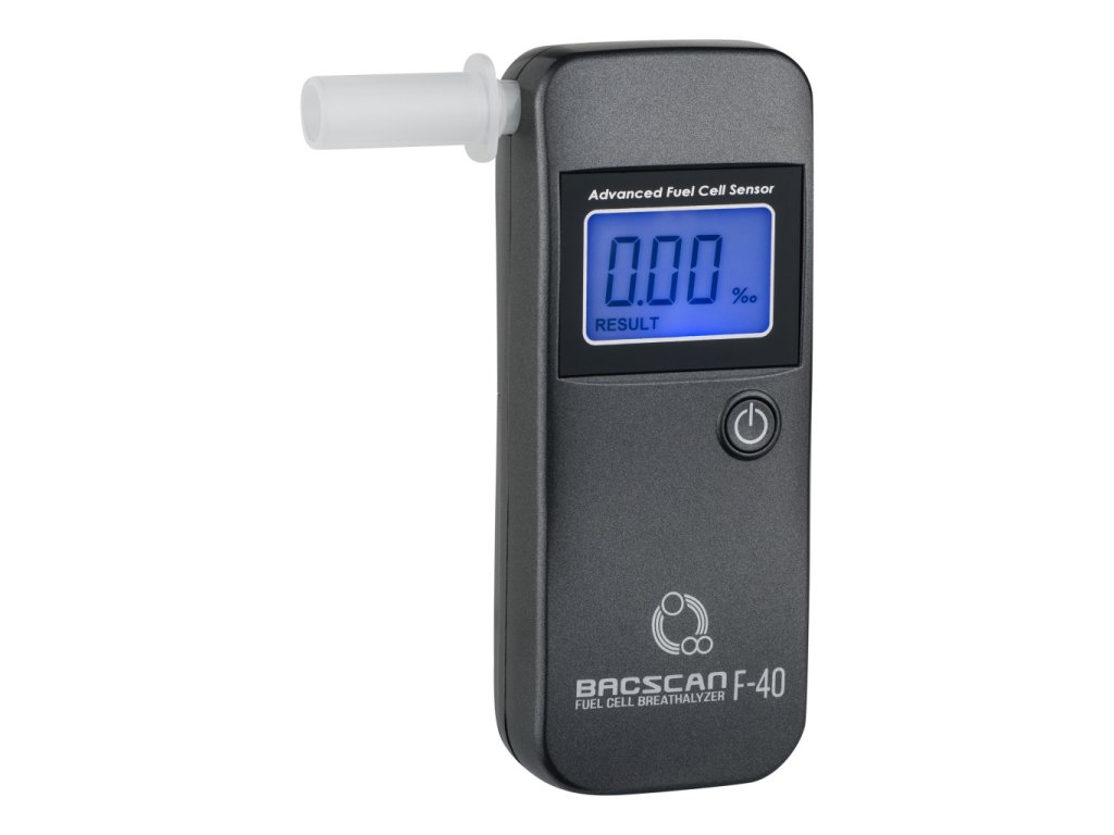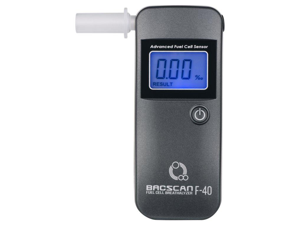 Alkomat BACscan® F-40 to połączenie eleganckiego wzornictwa i nowoczesnej technologii pomiarowej opartej na elektrochemicznym ogniwie. Jest liderem w klasie alkomatów elektrochemicznych nie tylko ze względu na niezwykłą dbałość o detale podkreślające jakość wykonania, ale przede wszystkim wysoką dokładność i powtarzalność pomiarów potwierdzoną przez niezależne laboratorium posiadające akredytację Polskiego Centrum Akredytacji (PCA) . Wyniki wyświetlane są w formie cyfrowej w zakresie od 0.00 do 4.00 ‰, z rozdzielczością do dwóch miejsc po przecinku. Alkomat BACscan® F-40 posiada wbudowany czujnik przepływu powietrza, system zabezpieczający komórkę pomiarową przed uszkodzeniem w wyniku niewłaściwie przeprowadzonej próby, licznik ilości wykonanych pomiarów oraz funkcję przypominającą o konieczności wykonania kalibracji.Dodatkowo w urządzeniu zastosowany został nowoczesny układ kontroli prawidłowego działania analizatora przed i po każdym pomiarze. Aby zminimalizować błąd pomiarowy oraz maksymalnie wydłużyć żywotność sensora, tester został wyposażony w moduł kontroli temperatury. Uniemożliwia on wykonanie pomiaru w przypadku, gdy przekroczony jest zakres temperatury pracy testera, co mogłoby skutkować uszkodzeniem podzespołów.