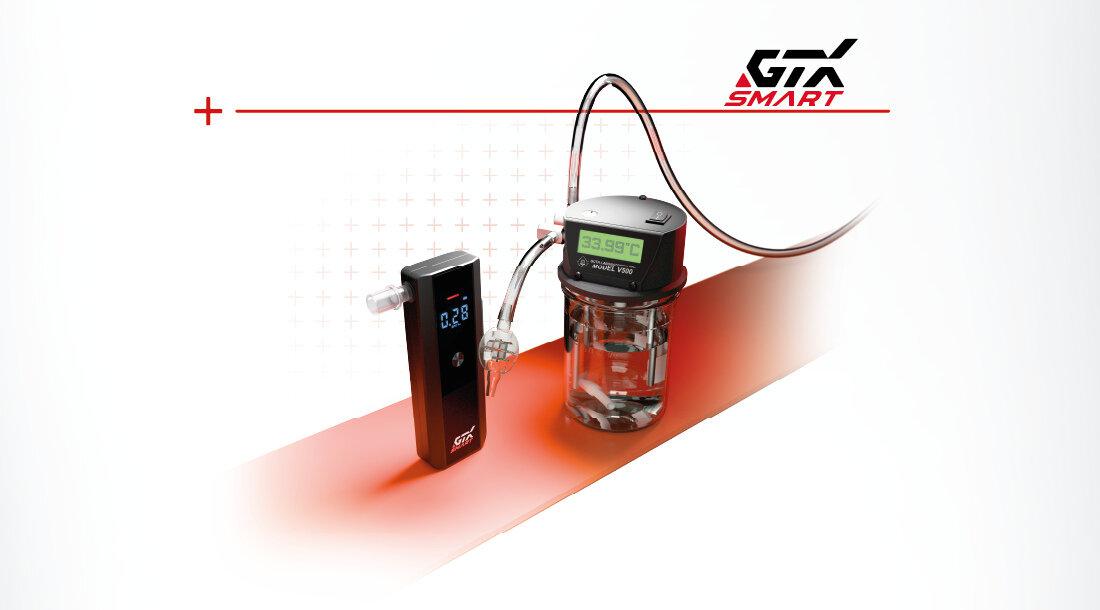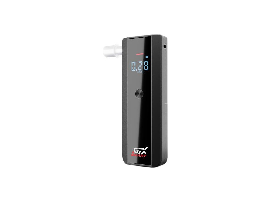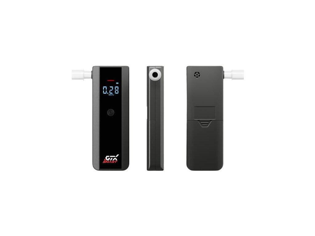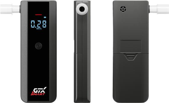 Alkomat GTX SMART posiada duży, podświetlany wyświetlacz LCD o wysokim kontraście, elegancko wkomponowany w front urządzenia. Ekran zapewnia doskonałą czytelność wyników nawet w trudnych warunkach oświetleniowych – zarówno przy silnym nasłonecznieniu, jak i w nocy. Komunikacja z użytkownikiem odbywa się również za pomocą kolorowej diody LED statusu, która sygnalizuje kolejne etapy badania: przygotowanie do pomiaru, analizę próbki oraz wynik (zielona – brak alkoholu, czerwona – wynik pozytywny). Urządzenie emituje sygnały dźwiękowe informujące o gotowości do pomiaru oraz zakończeniu badania, a funkcja automatycznego wyłączania oszczędza baterię po każdym teście.
