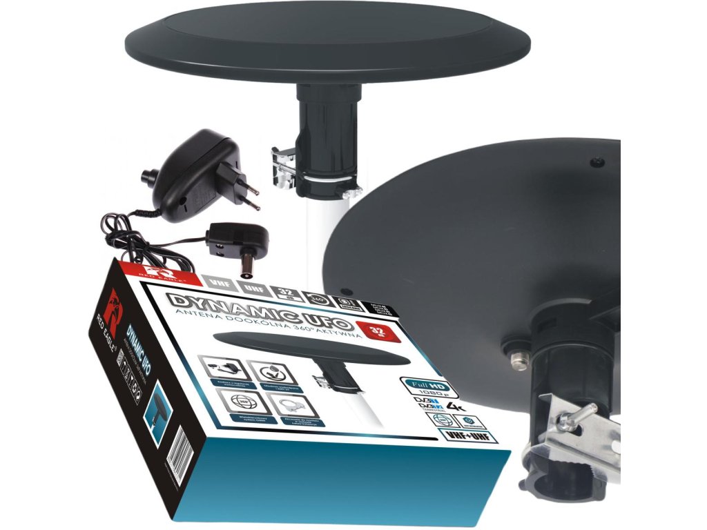 - W ostatnich latach anteny typu UFO mocno zyskują na popularności, gdyż są niewielkie, estetyczne i pozwalają na odbiór doskonałej jakości sygnału. Antena Dynamic UFO różni się jednak od innych tego typu produktów - posiada bowiem zasilacz regulowany, dzięki któremu jej użytkownik możesz precyzyjnie wyregulować siłę odbioru sygnału.