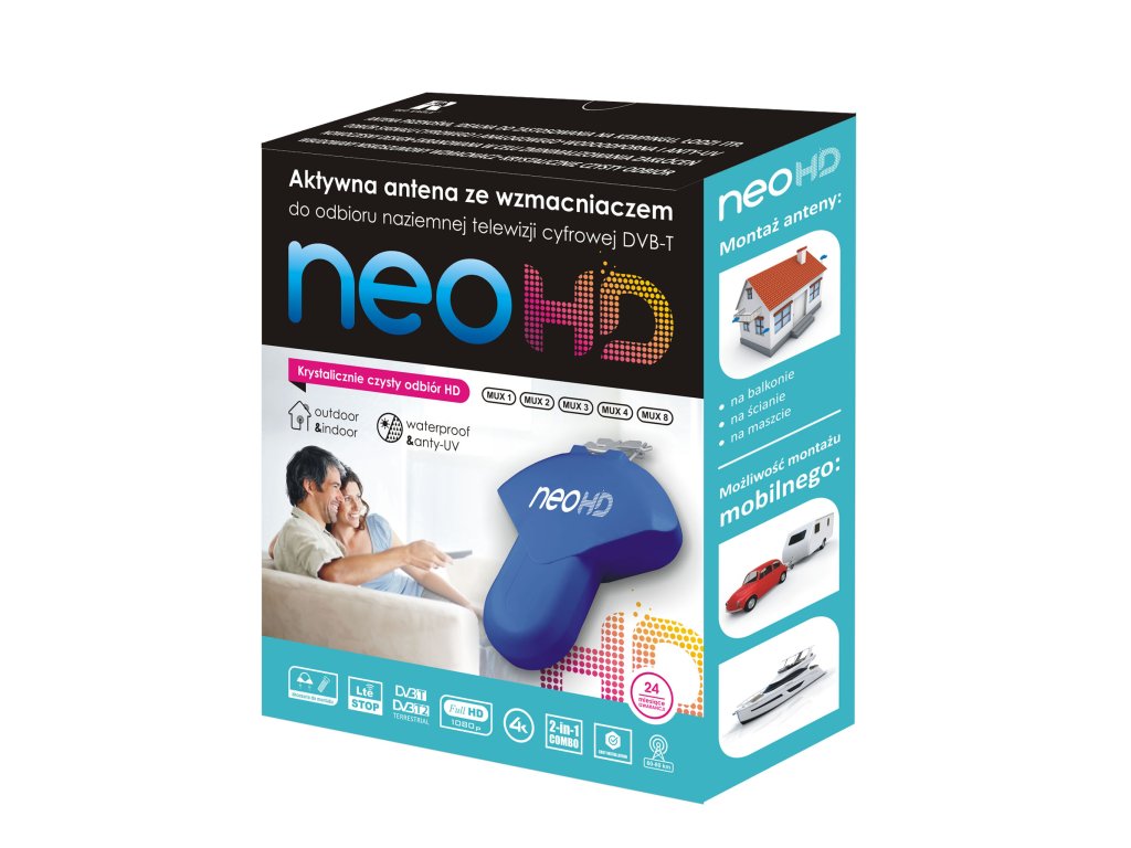 RED EAGLE NEO HD to wysokiej jakości antena aktywna przeznaczona do odbioru sygnału cyfrowej telewizji naziemnej DVB-T/T2 i analogowej jak i również sygnałów radiowych, również cyfrowych DAB+. NEO HD to niewielka antena idealna do zastosowania w domkach letniskowych, małych apartamentach, mieszkaniach a nawet na campingach. Oprócz niewielkich rozmiarów oraz niebywałej funkcjonalności urządzenie cechuje się ciekawym designem, który zadowoli użytkowników dbających o estetykę. Antena ma wbudowany filtr LTE, który niweluje zakłócenia sygnału spowodowane przesyłem danych sieci komórkowych co znacząco wpływa na poprawę jakości sygnału. NEO HD posiada powłokę ANTY UV oraz wodoodporną obudowę dlatego jest wysoce odporna na niesprzyjające warunki atmosferyczne, przez co świetnie nadaje się do zamontowania na zewnątrz pomieszczeń.
