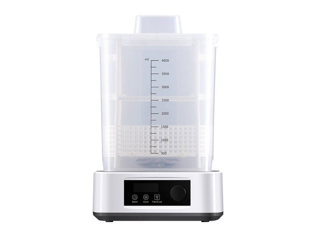 The device allows you to choose from 3 modes of operation, such as washing, curing and FlexiCure enhanced curing using the included UV lamp. You can also adjust the cleaning and drying time from 1 minute to 30 minutes. The Wash & Cure 3 model is operated with a convenient-to-use dial and touch-sensitive buttons.
