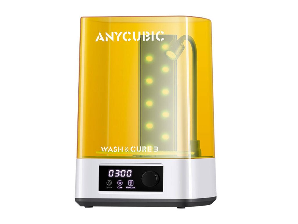 Take care of the proper finishing and curing of your 3D prints. The AnyCubic Wash & Cure 3 washing and drying device features an enlarged design that makes it great for models of different sizes. It allows cleaning both in a basket and with a platform. In doing so, it works surprisingly quietly and offers several operating modes to choose from. You can also manually adjust the cleaning and curing times.