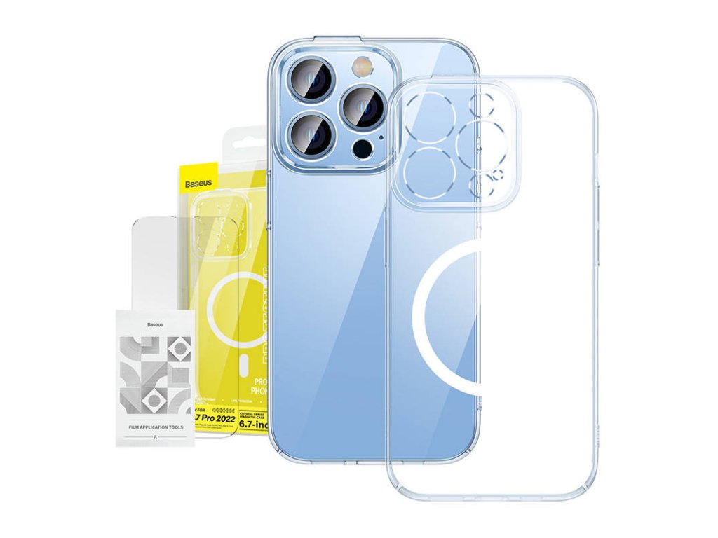 Baseus Crystal ochranná sada priehľadného magnetického puzdra a tvrdeného skla pre iPhone 14 Pro Max