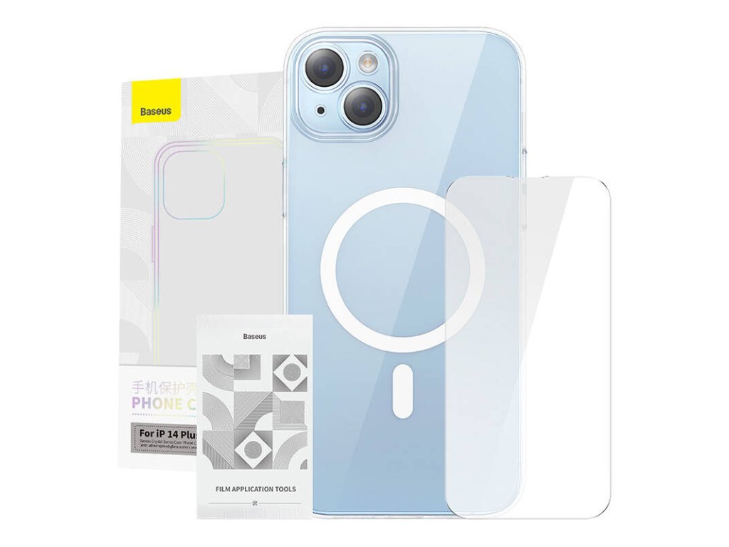 Magnetické puzdro Baseus Crystal Series pre iPhone 14 Plus + tvrdené sklo