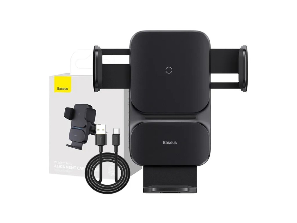 Baseus Wisdom držiak telefónu s bezdrôtovým nabíjaním do auta (čierny)