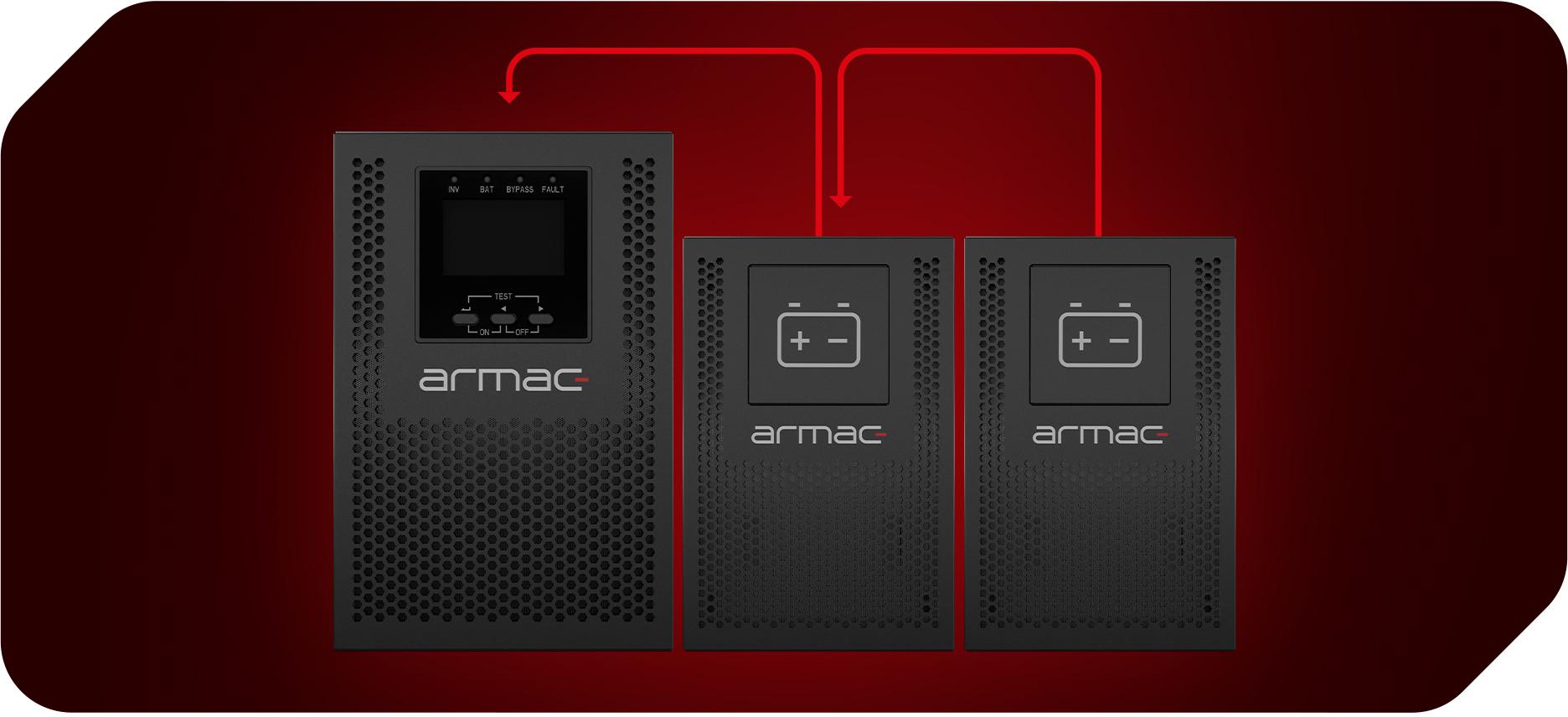 W przypadku zasilaczy awaryjnych Armac możliwość wydłużenia czasu podtrzymania nie kończy się na jednym battery pack’u. System przewiduje: