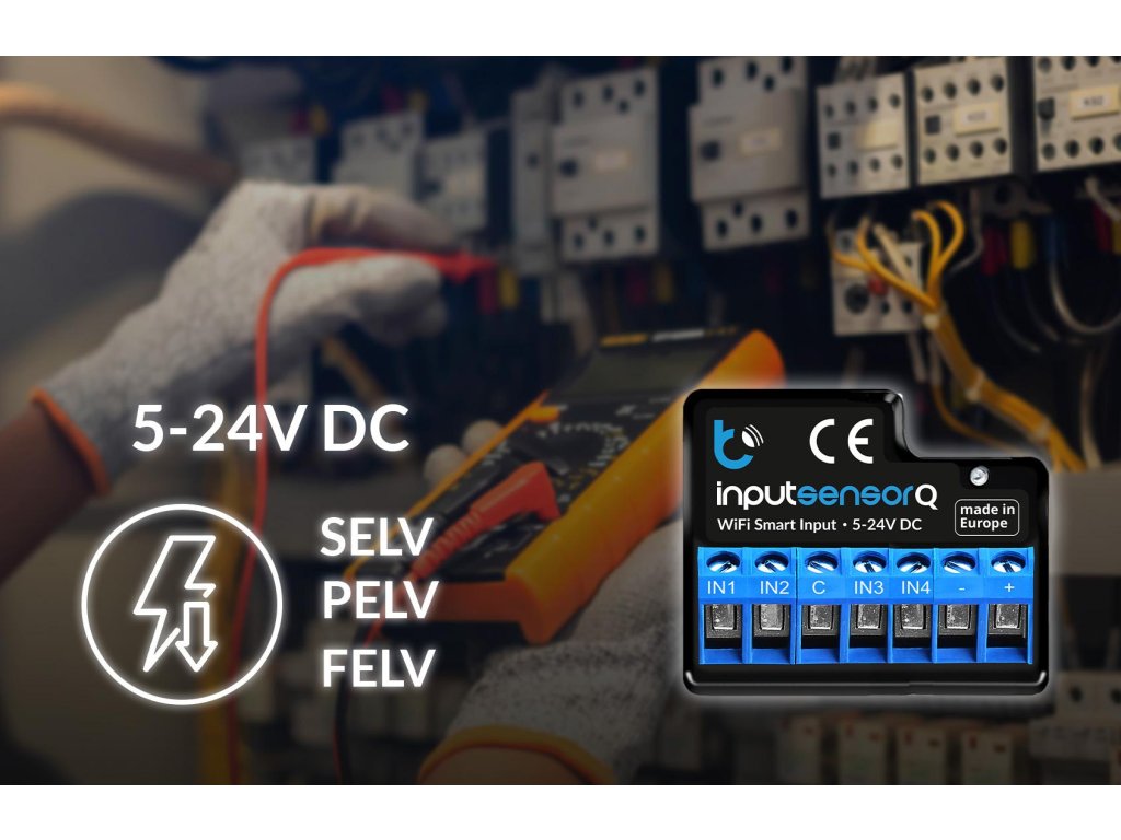 Czujnik WiFi „BleBox inputSensorQ” zasilany jest bezpiecznym napięciem 5-24V DC, co pozwala na pracę w układach FELV, PELV i SELV.