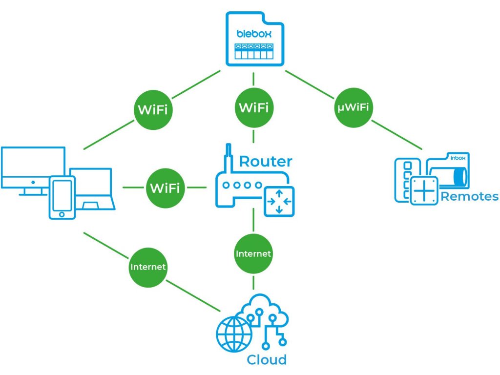 - Zdalnie – z dowolnego miejsca na świecie, dzięki darmowej chmurze BleBox