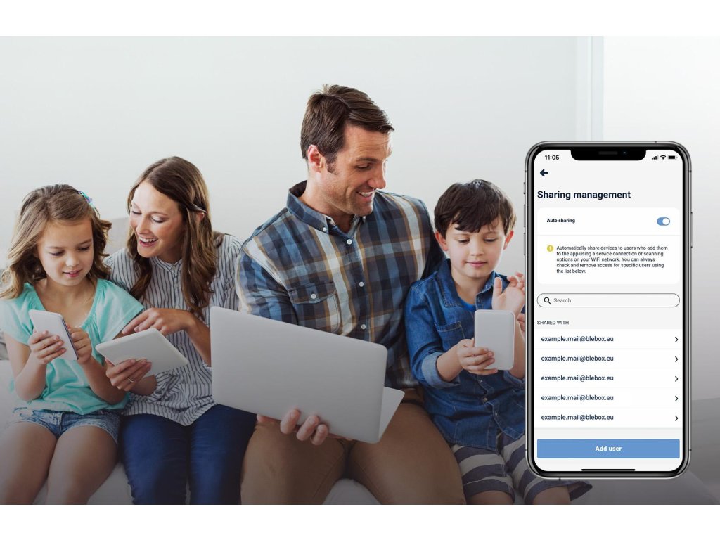 Dzięki darmowej chmurze BleBox oraz aplikacji wBox, możesz zarządzać dostępem do czujnika z dowolnego miejsca na świecie oraz łatwo udostępniać go innym użytkownikom.