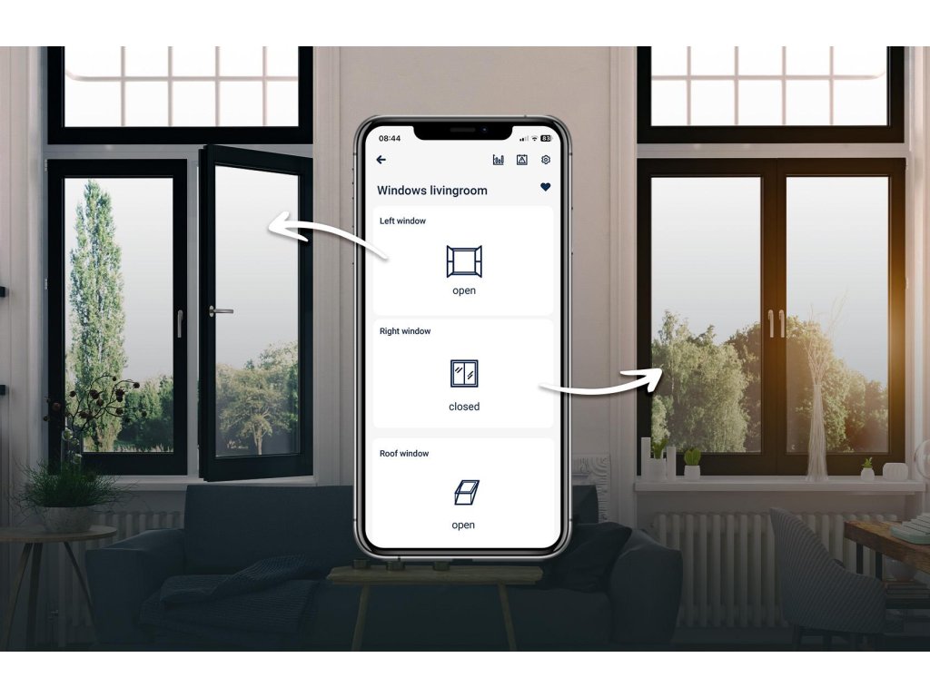 Pozwala to na bieżące monitorowanie stanu otwarcia okien oraz drzwi tarasowych, balkonowych lub wejściowych.