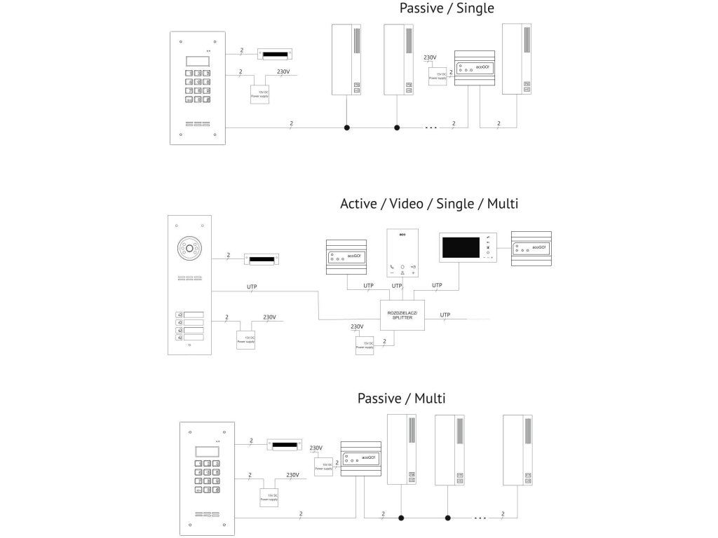 Minimalistyczna forma pozwala na wszechstronne zastosowanie urządzenia w różnego rodzaju inwestycjach. Przeznaczone jest głównie do montażu w rozdzielni. Do działania urządzenie wymaga stałego podłączenie do Internetu, który można dostarczyć za pomocą sieci bezprzewodowej WiFi lub sieci przewodowej LAN (zalecane rozwiązanie). AcoGO! można zamontować zamiast klasycznego odbiornika domofonowego audio lub wideo, a także umożliwia wysyłanie sygnału Video z kamery domofonu w postaci strumienia RTSP, który może by przechwycony przez np. rejestrator wideo.