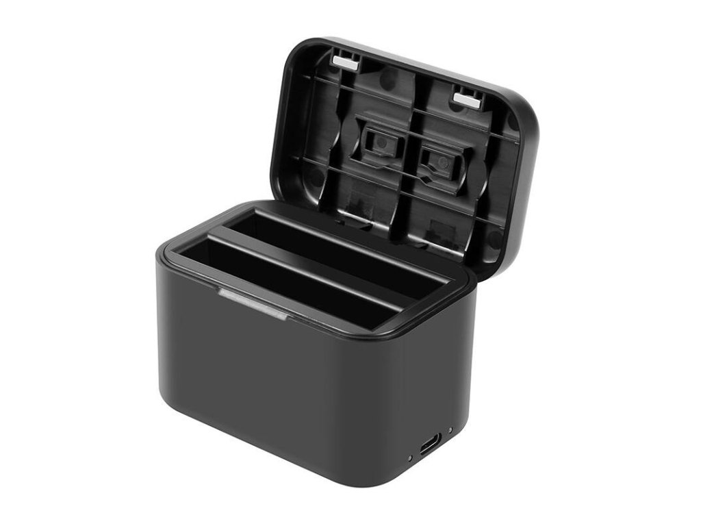 Puzdro bolo navrhnuté s ohľadom na používateľov kamery Insta360 X4. Jeho multifunkčnosť znamená, že môže slúžiť ako nabíjačka alebo úložný box na pamäťové karty, čím sa zabezpečí ich maximálna ochrana a bezpečnosť. Má dvojitý nabíjací slot s nezávislým napájaním, ktorý umožňuje nabíjať dve batérie súčasne, a inteligentnú správu stavu nabíjania, ktorá zabraňuje prebíjaniu a zaisťuje bezpečnosť. Vstavané kontrolky umožňujú sledovať prevádzku puzdra - červená kontrolka signalizuje, že batérie sa ešte nabíjajú, a zelená kontrolka znamená, že batérie sú plne nabité. Poznámka - batérie nie sú súčasťou balenia.