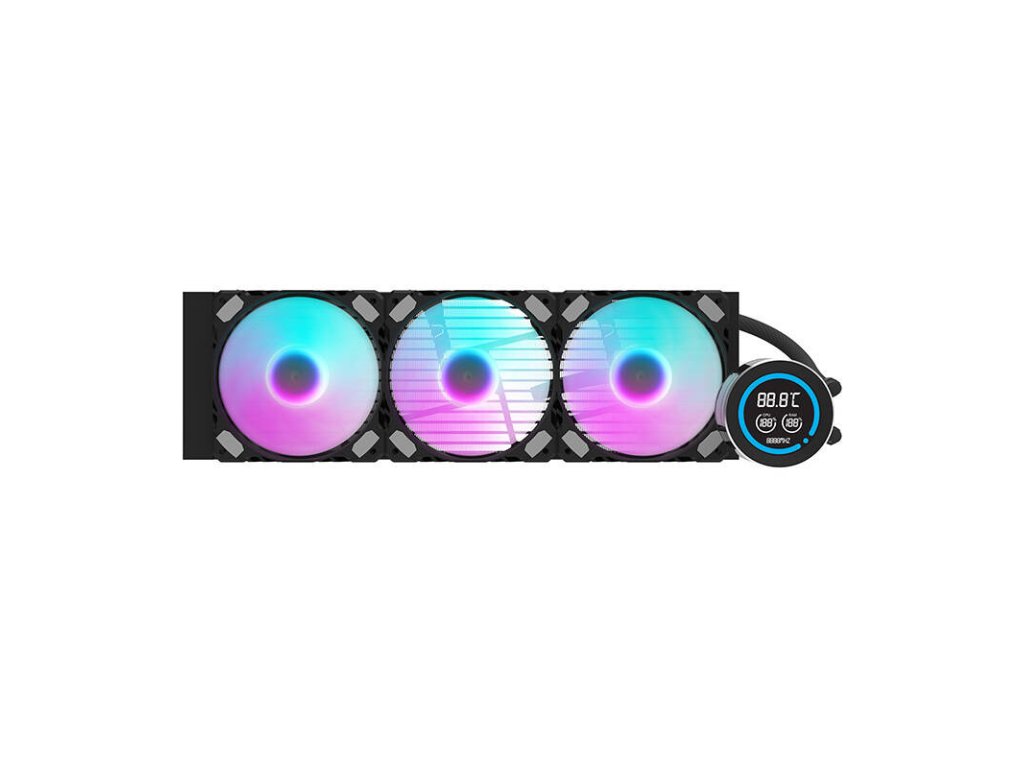 Darkflash DN-D360 je výkonný 360 mm vodný chladič, ktorý zabezpečuje stabilnú prevádzku procesora pri nízkych teplotách. Je vybavený medeným vodným blokom a hliníkovým chladičom, ktorý účinne odvádza teplo, čo je nevyhnutné pri veľkom zaťažení systému. Tri 120 mm ventilátory s hydraulickými ložiskami, ovládaním PWM a podsvietením ARGB zaručujú optimálne prúdenie vzduchu a tichú prevádzku. Displej LCD umožňuje monitorovať teploty CPU a RAM, zatiaľ čo trubice IIR+EPDM zabezpečujú vysokú teplotnú odolnosť a konštrukčnú trvanlivosť.