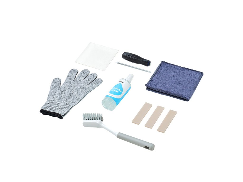 Čistiaca súprava MOVA je praktická súprava na údržbu a čistenie pre kosiace roboty MOVA 600 a 1000. Vďaka vhodne zvolenému príslušenstvu umožňuje jednoducho a bezpečne odstrániť nečistoty z krytu, kolies a nožov, čo vedie k predĺženiu životnosti a spoľahlivosti robota.