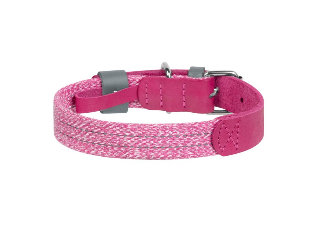 Obojok pre psa z prírodnej kože a recyklovanej bavlny Waudog Classic veľkosť L, ružový.