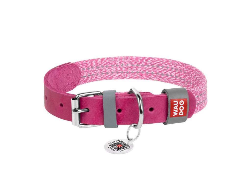 Obojok pre psov z prírodnej kože a recyklovanej bavlny Waudog Classic veľkosť M, ružový.