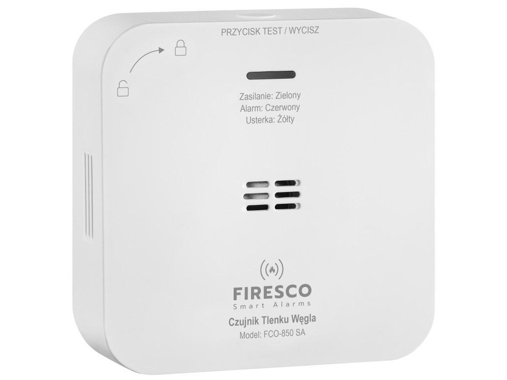 Firesco FCO-850 SA - nowoczesny detektor tlenku węgla z przyciskiem TEST / WYCISZ