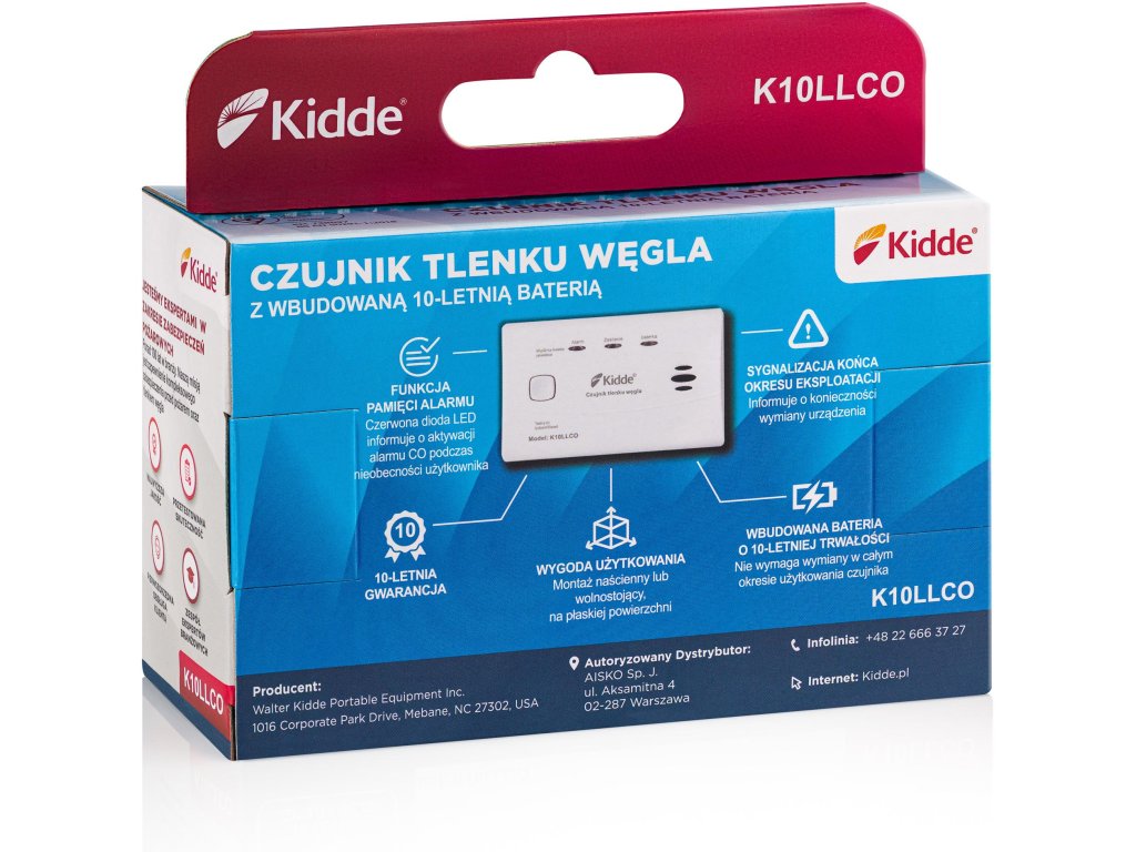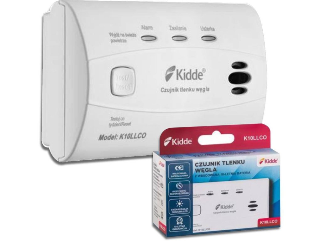 - Czujnik tlenku węgla K10LLCO wyposażony w sensor elektrochemiczny Kidde, gwarantujący użytkownikowi 10-letni okres pracy.
