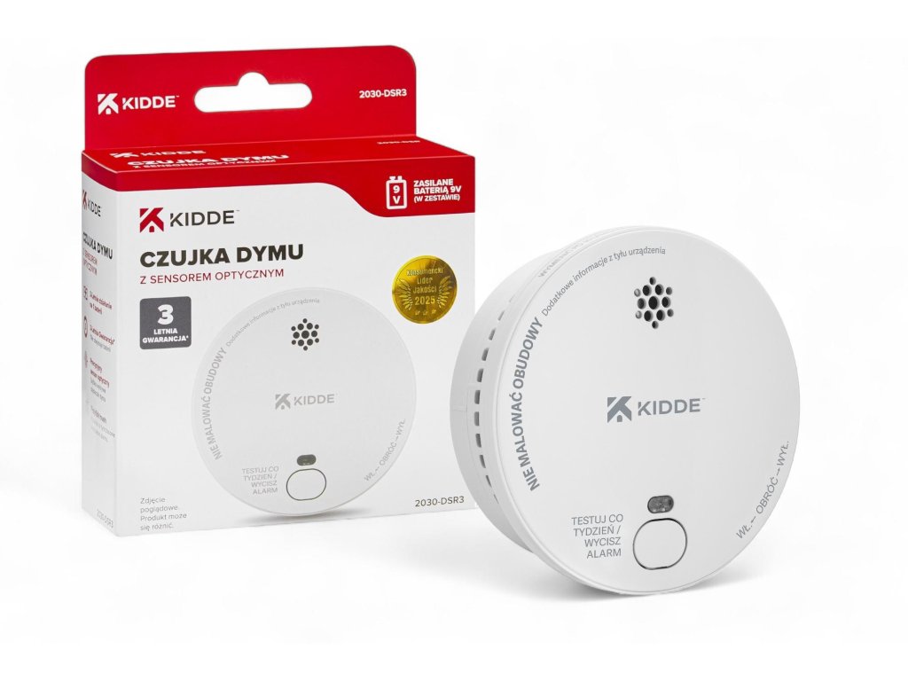 Czujka dymu Kidde 2030-DSR3 to niezawodne rozwiązanie do ochrony domu, wyposażone w wymienną baterię o wydłużonej żywotności. Zastosowana technologia pozwala na nawet trzykrotnie dłuższy czas działania w porównaniu do standardowych czujek dymu dostępnych na rynku. Urządzenie wykorzystuje opatentowany optyczny sensor Kidde, zaprojektowany do 10 lat nieprzerwanej pracy. Po upływie tego okresu czujka automatycznie poinformuje o konieczności wymiany na nową.