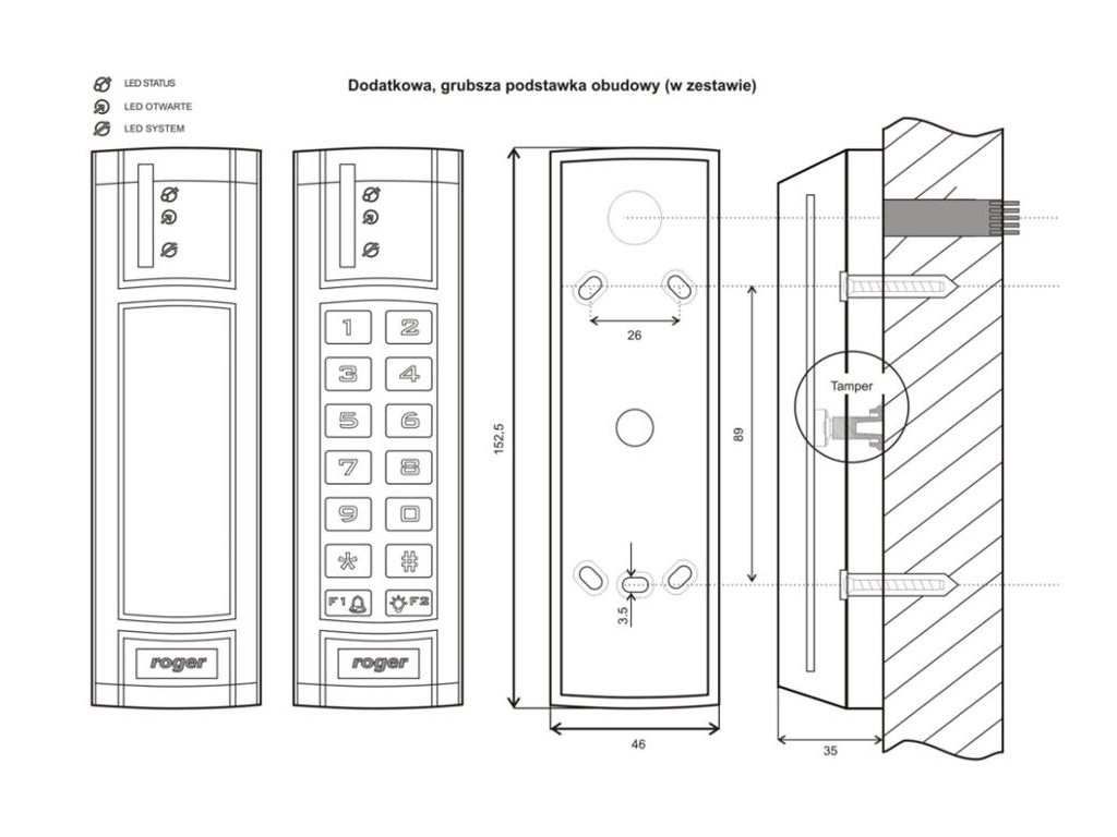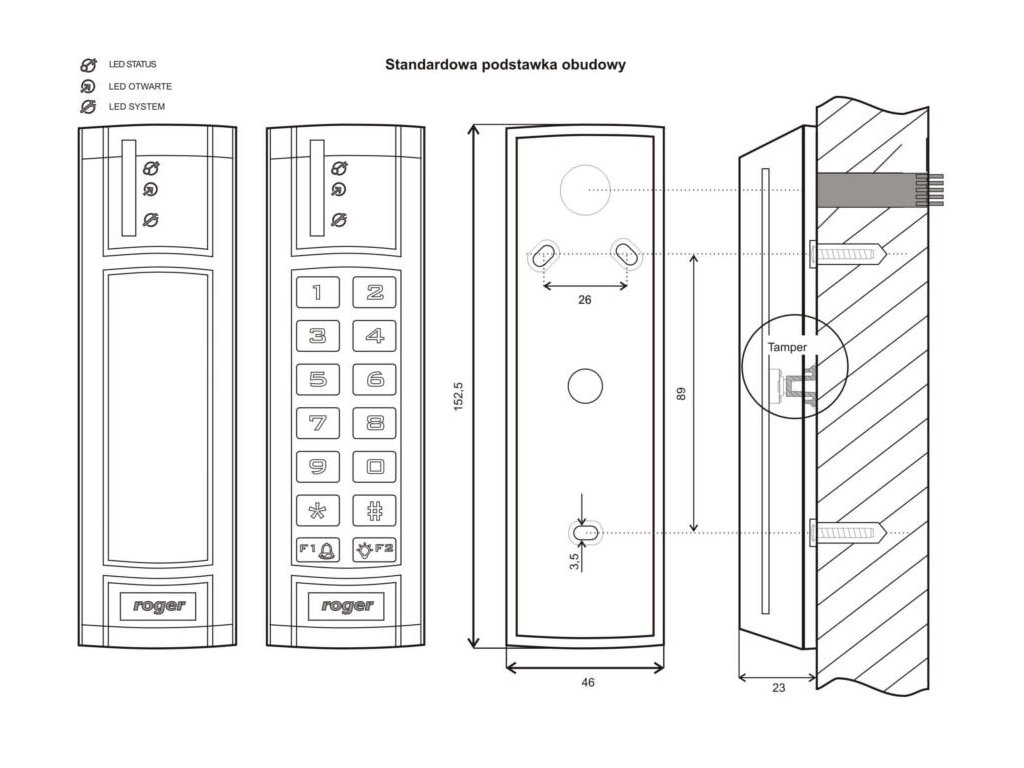 Obudowa czytnika składa się z panelu przedniego oraz podstawy. Nowe urządzenie jest zmontowane na podstawce standardowej, ale w zestawie dostarczana jest również dodatkowa grubsza podstawa (głębokość 35 mm). Ułatwia ona schowanie kabla podłączeniowego np. wtedy gdy w miejscu instalacji kontrolera nie ma puszki podtynkowej.