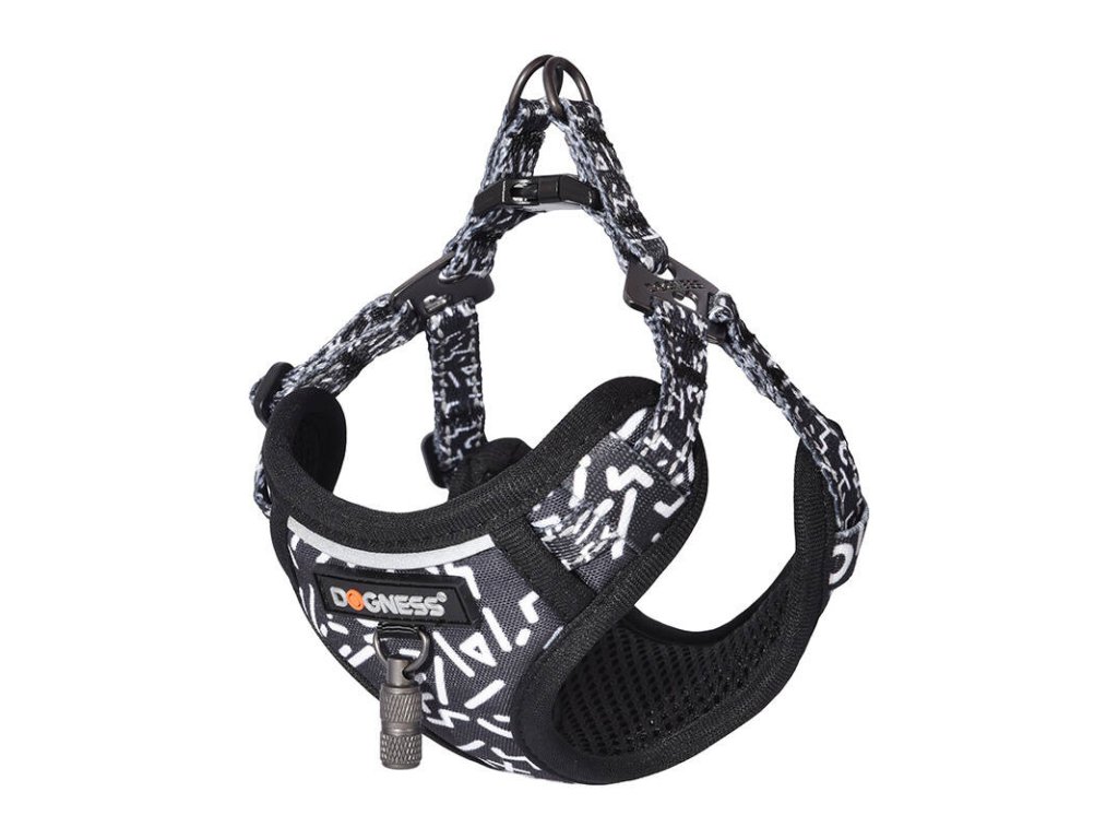 Dogness walking set leash 1,5m+harness for dog (black and white)