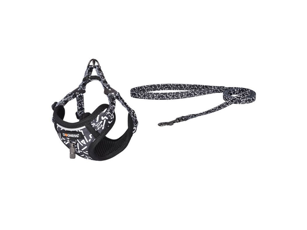 Dogness vychádzkový set vodítko+ postroj pre psa (čiernobiely).