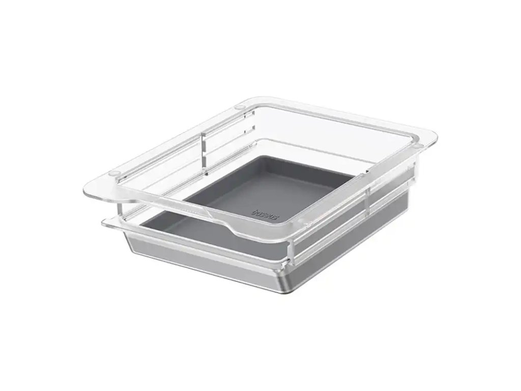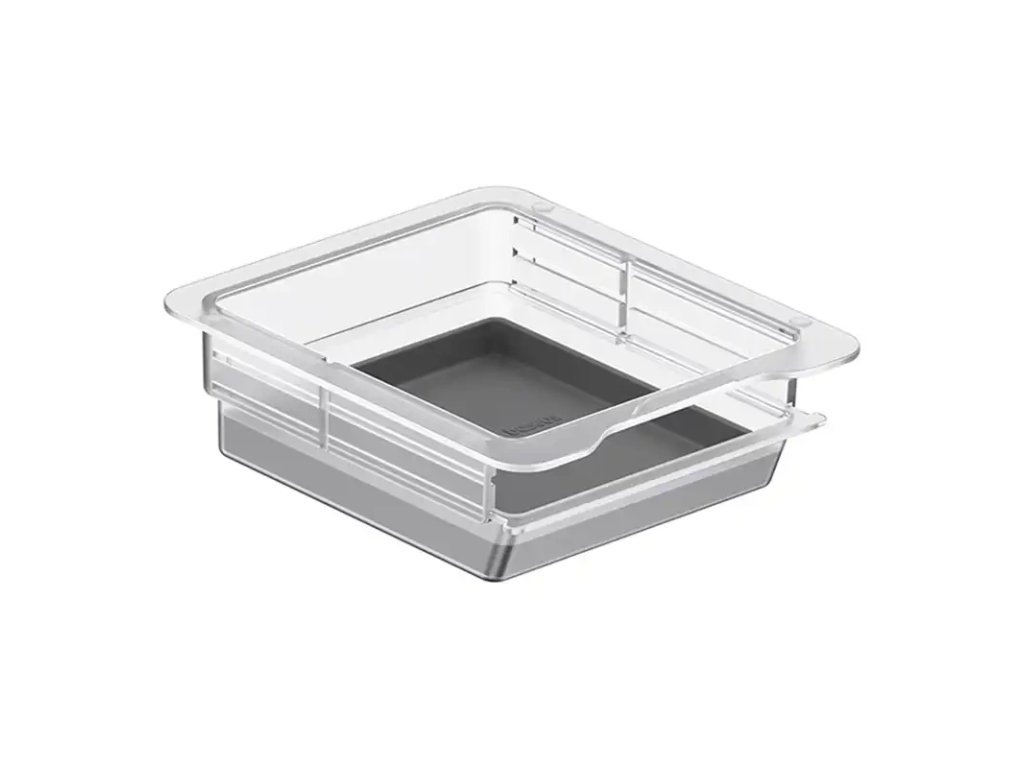 Inštalácia kontajnera je veľmi jednoduchá a neinvazívna - stačí ho zasunúť do kontajnera a je hotovo. Navyše, ak chcete získať prístup k predmetom v hlbšej časti priehradky, stačí ju posunúť dopredu, ako keby ste zatvárali zásuvku. Nádoba je vyrobená zo silikónu FGS (Food Grade Silicone), ktorý je vysoko odolný voči opotrebovaniu a teplu - je tiež bez zápachu, nezachytáva prach a tlmí a tlmí pohybujúce sa predmety. V prípade potreby sa veľmi ľahko čistí.