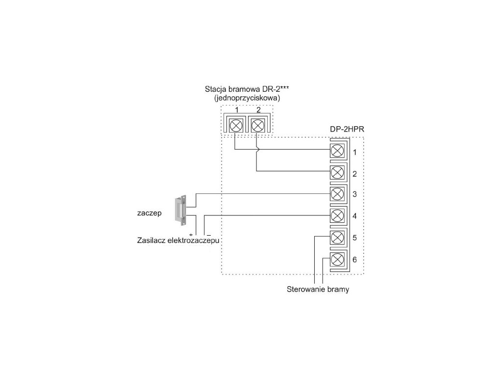 - instalacja 2 przewodowa + obwód zamka elektromagnetycznego + dodatkowy obwód (np. otwieranie bramy)