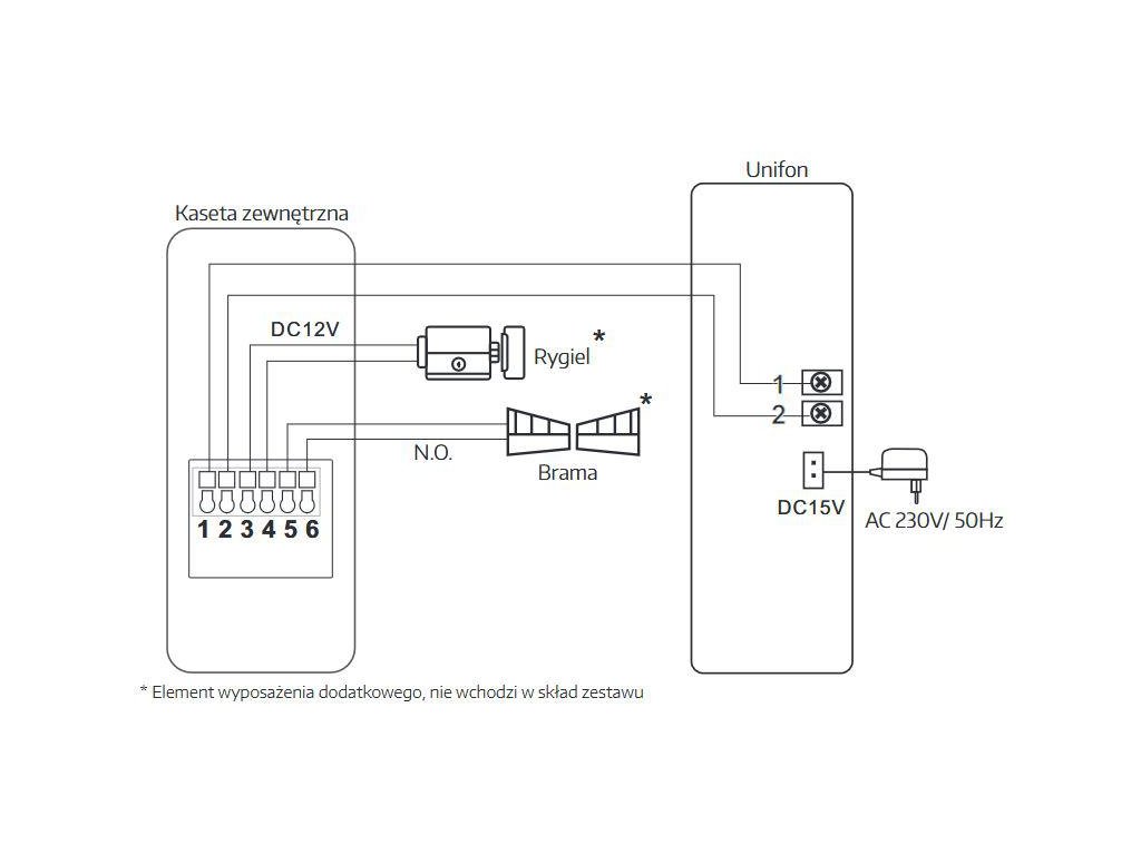 | Ilość przewodów łączących panel zewnętrzny i unifon: | 2 |