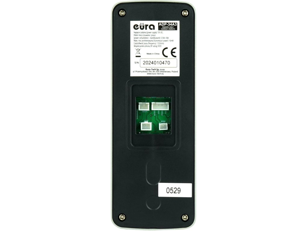 - Dzięki tym wszystkim udogodnieniom kaseta zewnętrzna domofonu Eura ADP-34A3 gwarantuje odporność na niekorzystne warunki atmosferyczne.
