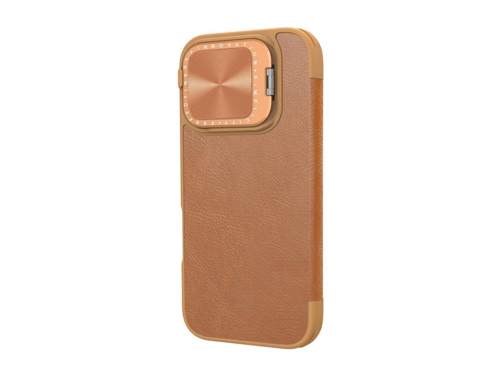 Nillkin Qin Prop kožené puzdro na iPhone 16 (hnedé)