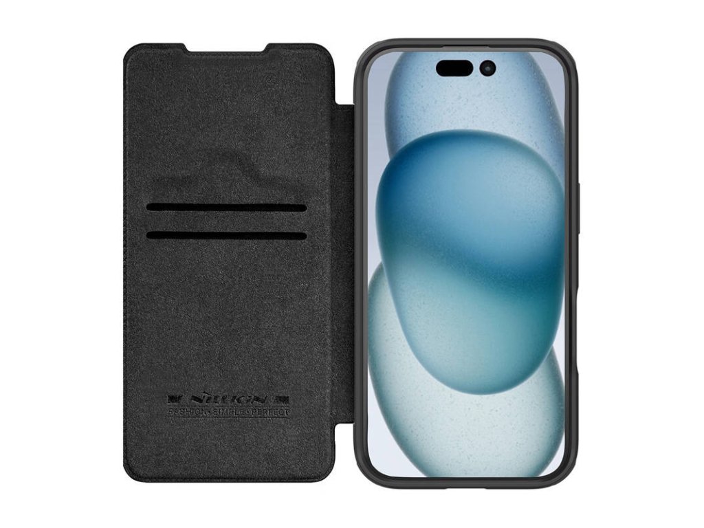 Nillkin Qin Prop kožené puzdro na iPhone 16 (čierne)