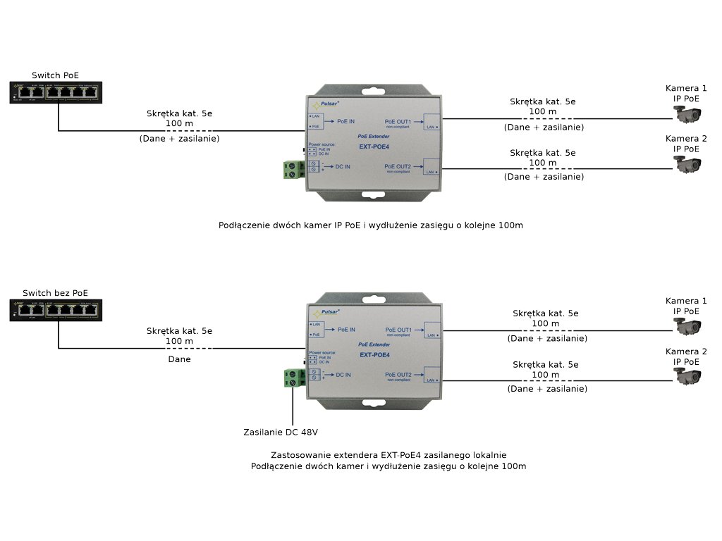 EXTENDER POE DO 2 KAMER IP Pulsar EXT-POE4 48V
