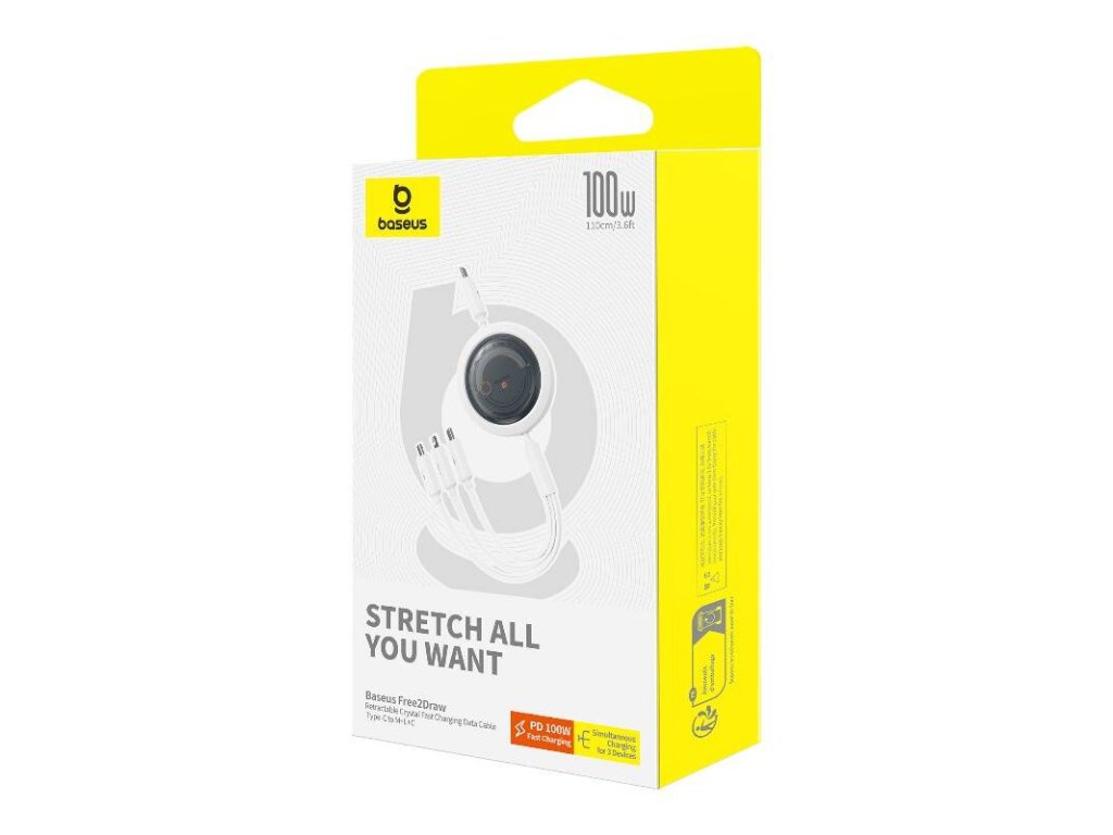 Fast Charging Cable 3in1 Baseus Free2Draw USB-C to USB-C/Lightning/Micro 100W, 1,1m (white)