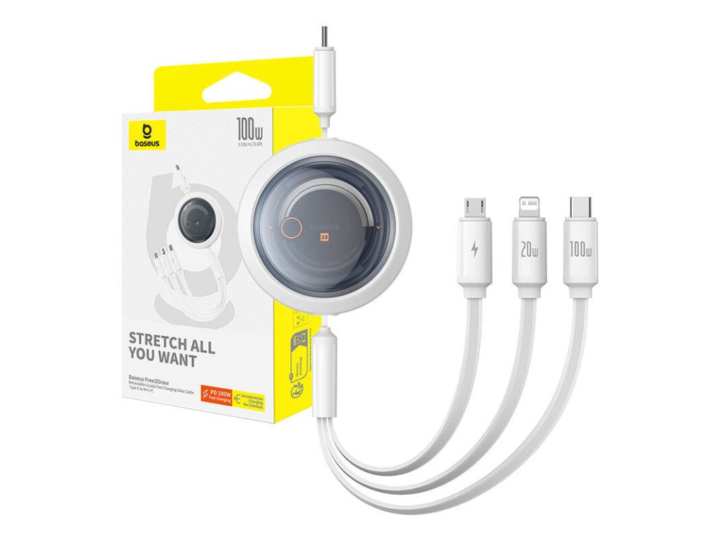 Kábel Baseus Free2Draw USB-C 3 v 1 USB-C/Lightning/Micro 100W, 1,1 m (biely).