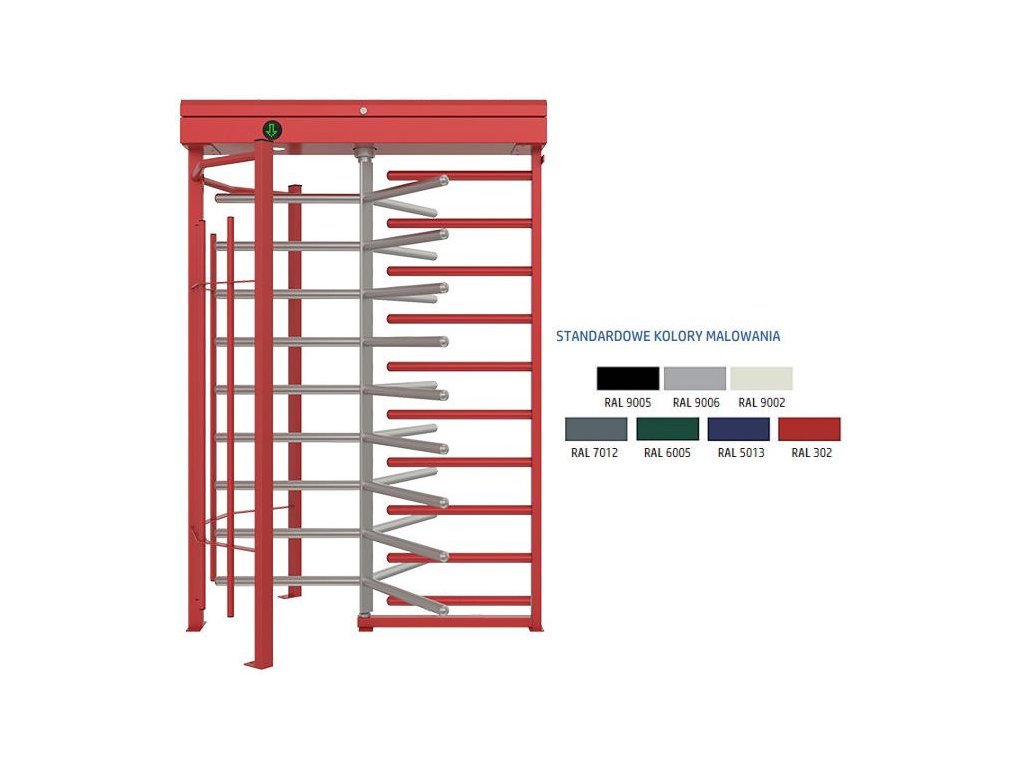 - Nominalna liczba przejść w wersji z silnikiem wspomagającym ruch rotora: ~15 osób/minuta