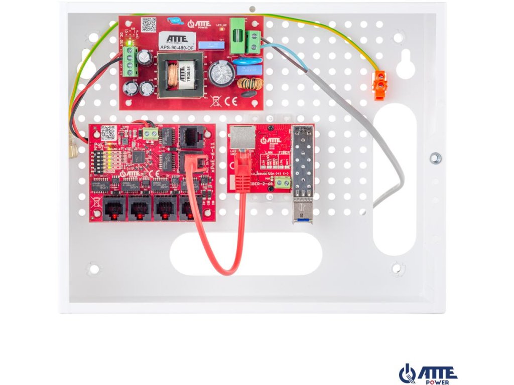 Niewielkie rozmiary umożliwiają zabudowę urządzenia w dowolnej obudowie, jednak najwygodniejszym sposobem montażu, są dedykowane obudowy serii ABOX, oraz blachy montażowe, wyposażone w otworowanie systemowe w rastrze 10,8mm. Systemowe rozwiązanie pozwala na pionowy lub poziomy montaż wybranych urządzeń w dowolnej, otworowanej części obudowy lub blachy montażowej