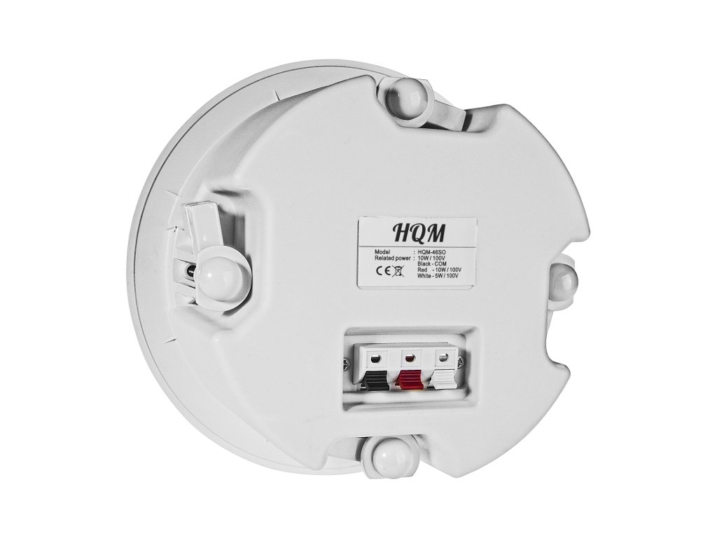 Jednym z wielu atutów głośnika sufitowego HQM 46SO jest stabilność oraz niezawodność pracy. Urządzenie wyposażone jest w 4" głośnik niskotonowy i 1" głośnik wysokotonowy dostarczający wysokiej jakości dźwięku do otoczenia. Dwudrożna technologia pracy pozwala zarówno na emisję sygnałów mowy, jak i muzyki tła. Dodatkowo, zintegrowany transformator umożliwia pracę w technice napięciowej 100V z mocą skuteczną 5W lub 10W.