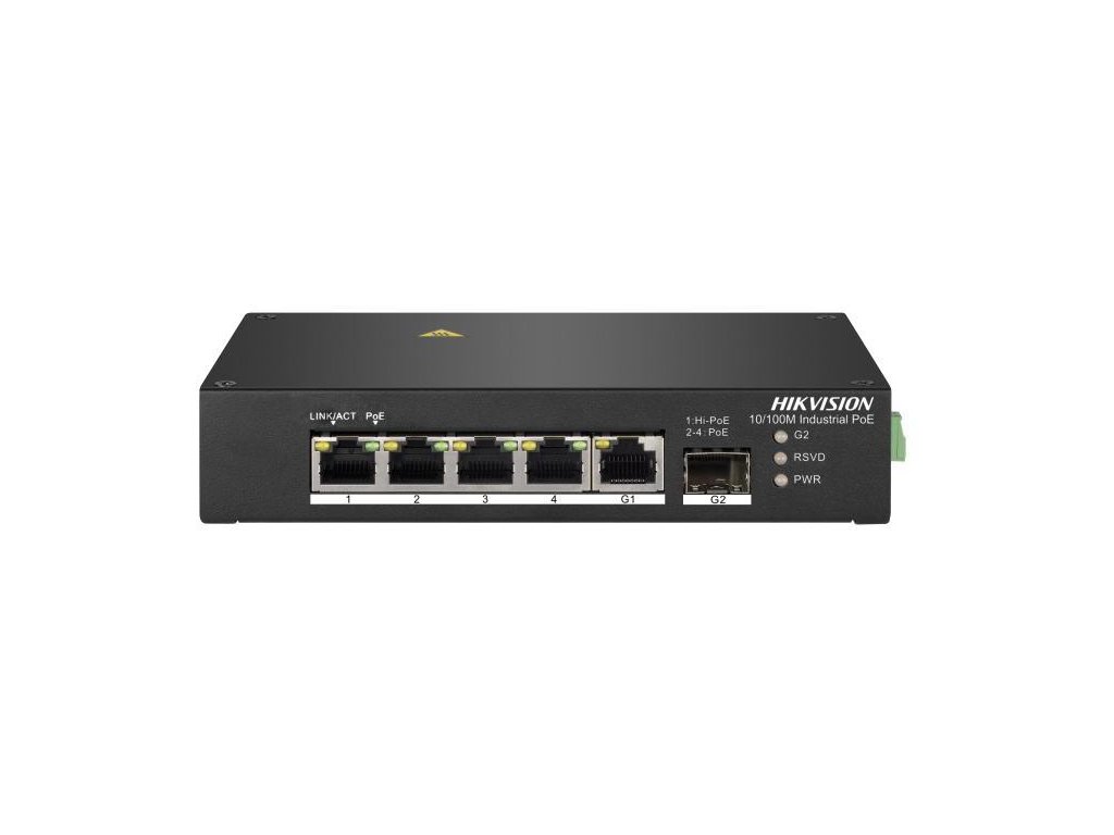 - 4 × porty PoE 10/100 Mb/s, 1 × port Gigabit RJ45, 1 × port Gigabit SFP (światłowodowy)