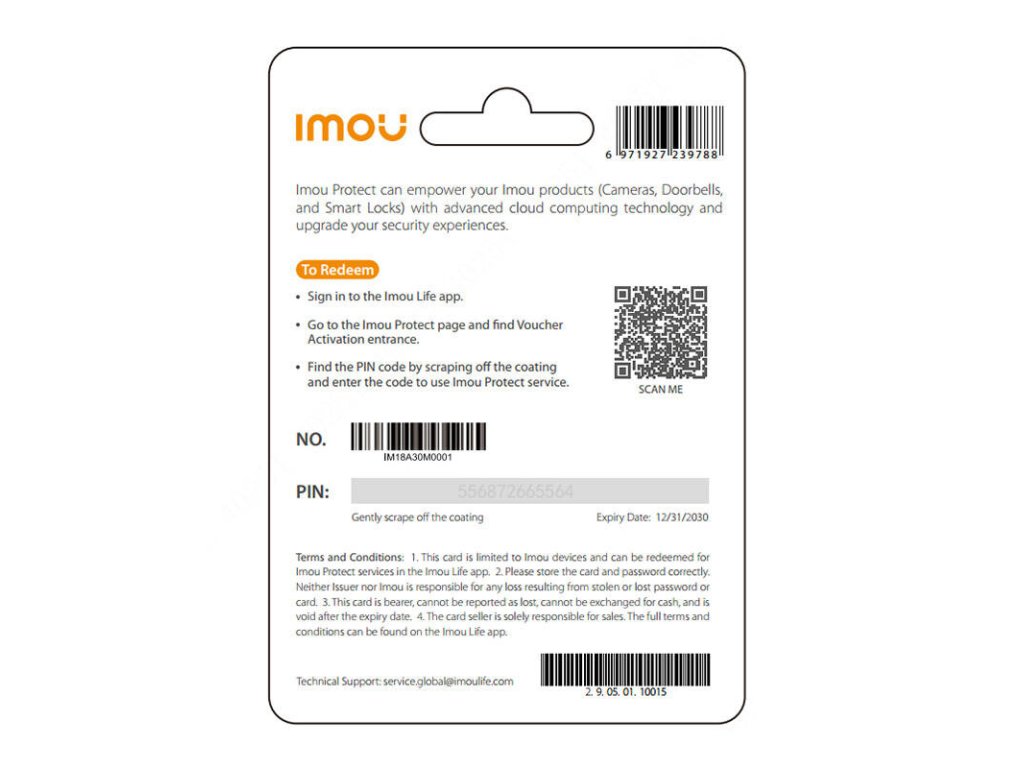 With the card, you gain a one-year support subscription for your IMOU products. As part of it, you get advanced cloud computing technology as well as enhanced security. Choose IMOU Protect and enjoy even more convenience. Note: Subscription is for single camera only, not applicable to DUAL cameras.
