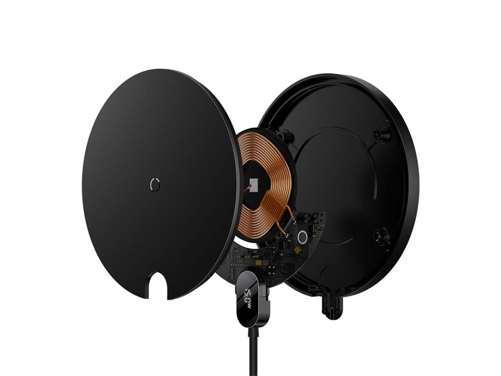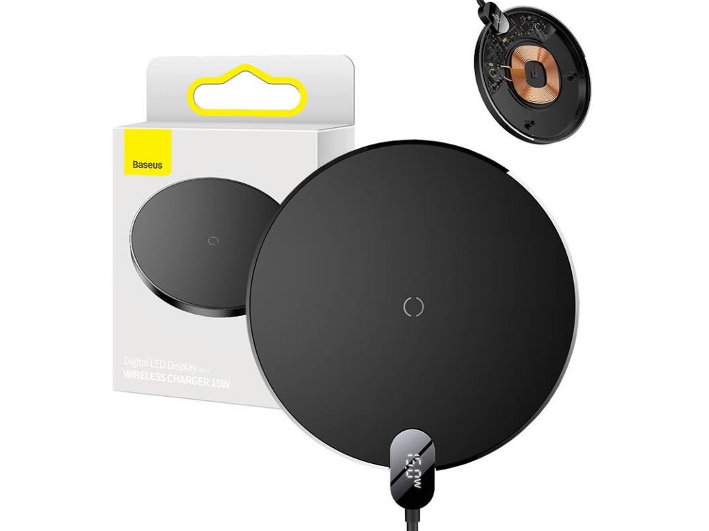 Indukčná bezdrôtová nabíjačka Baseus Digital LED 15W (čierna)
